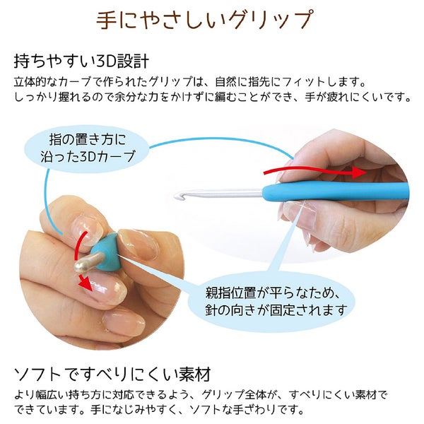 ・やわらかく滑りにくい素材で、長時間編んでも手が疲れにくい