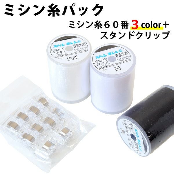 手芸 ミシン糸 パック スパンミシン糸 60番/700m&スタンドクリップ