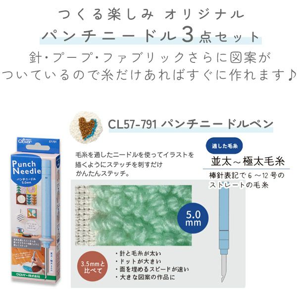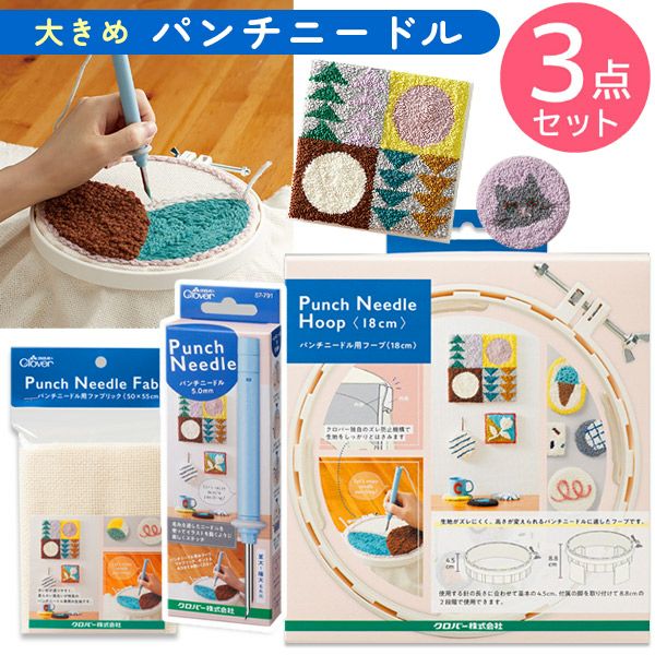 - パンチニードル 大き目 18cm 3点セット スターターセット ニードルパンチ クロバー パンチニードル 刺しゅうキット 刺しゅうセット プレゼント ハンドメイド 手芸 刺しゅう 手づくり 青 57-791 57-774 57-767 57-769│つくる楽しみ
