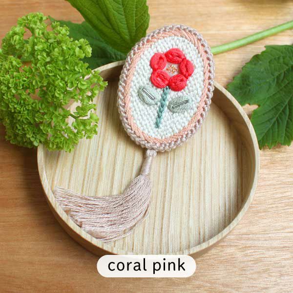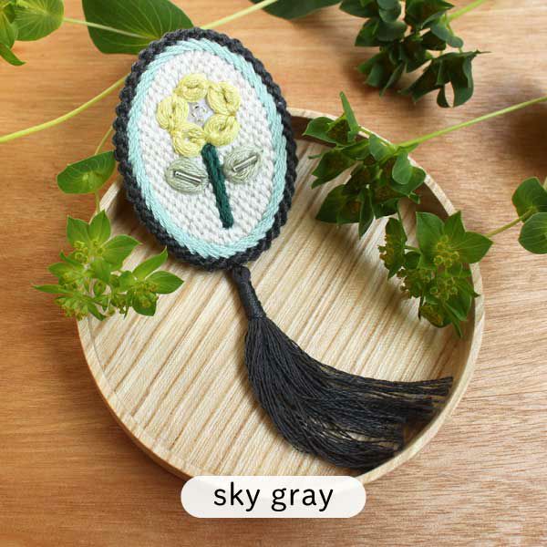 刺繍でフレームや背景を表現しているので刺しごたえと存在感のあるブローチが仕上がります。