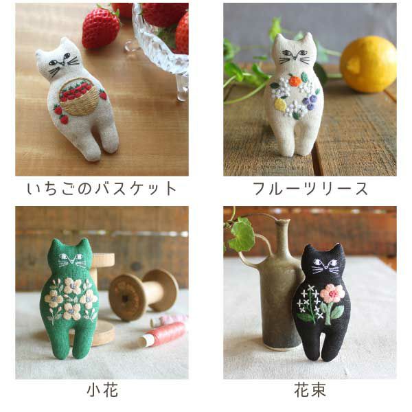 猫をモチーフにした布小物刺繍作品を手掛ける。