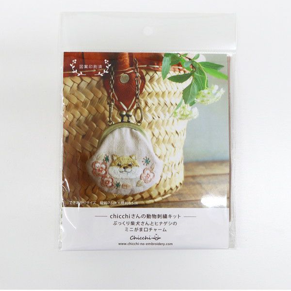 刺繍キット chicchiさんの動物刺キット ぷっくり柴犬さんとヒナゲシのミニがま口チャーム
