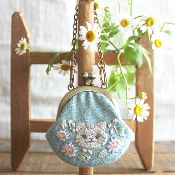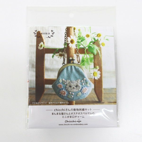 刺繍キット chicchiさんの動物刺キット まんまる猫さんとオステオスペルマムのミニがま口チャーム