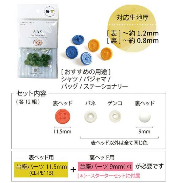- プラスチックスナップ ボタン 釦 (12組x3袋入) ぼたんのみ 11.5mm CHERRY LABEL チェリーレーベル サンボタン