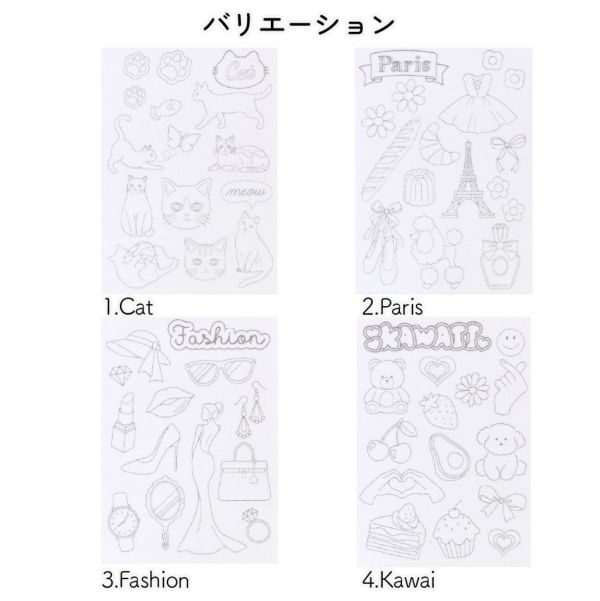 「Cat」「Paris」「Fashion」「Kawaii」選べる楽しい4種類。