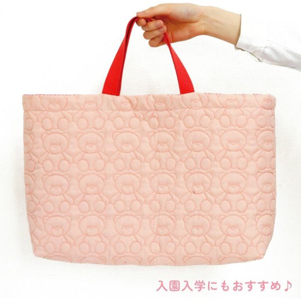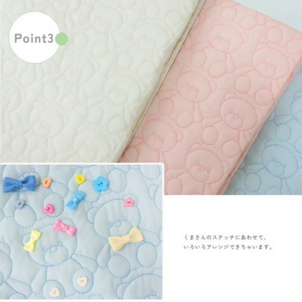 手をつないだくまさんの刺しゅうが並ぶ、やさしくて可愛いデザイン。