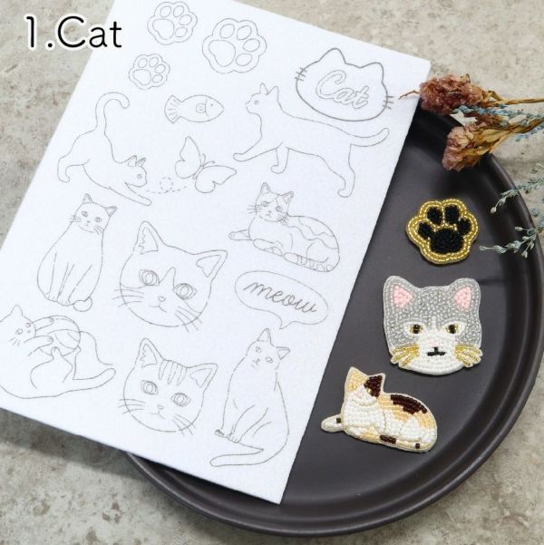 絵柄に沿ってビーズや糸を刺すだけで、かわいいモチーフが簡単に完成します。
