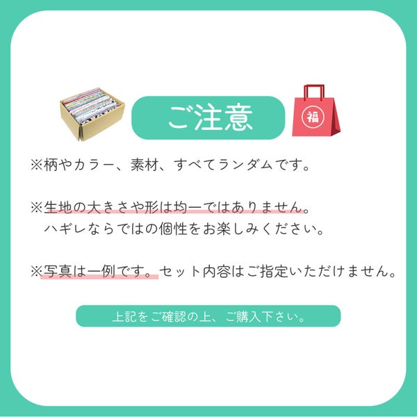 ※すべてランダムでのお届けです。柄や色、素材の指定はできません。
