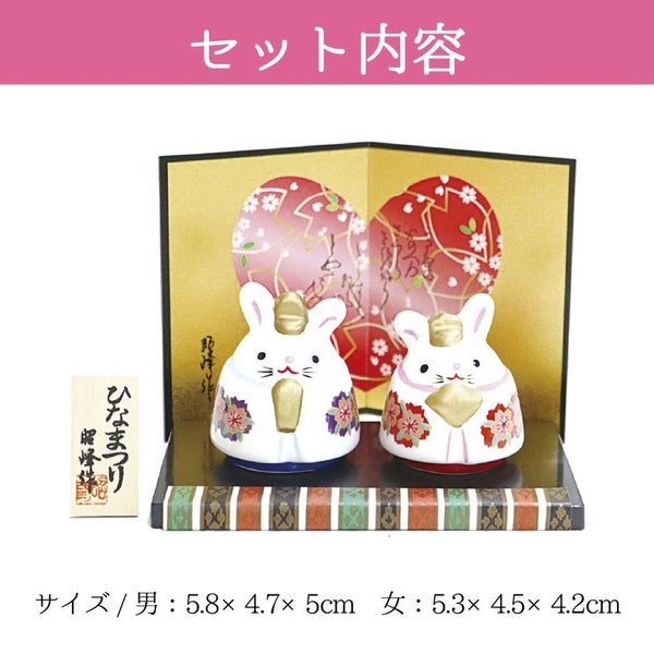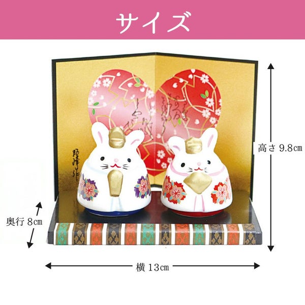 うさぎモチーフの愛らしい表情が印象的なひな人形です。