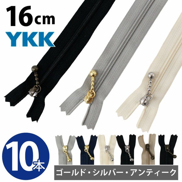 (徳用10本入) 玉付きファスナー コイル 16cm ゴールド シルバー (セット) 玉付ファスナー 玉付 ファスナー YKK | 手芸材料のネットショップ つくる楽しみ.com