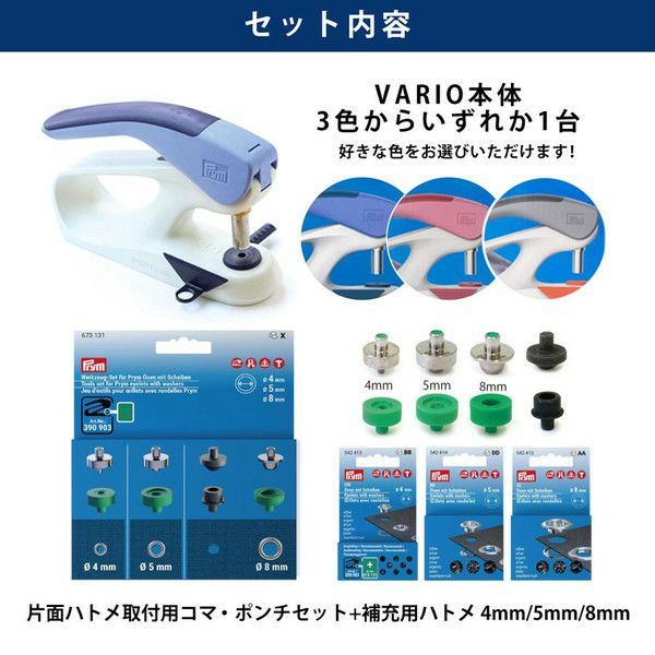 ハンドプレス機 家庭用+片面ハトメ コマ&補充用 3点セット プラスナップ ハンドプレス プリム(Prym) VARIO Creative Tool 選べるプレス機 | 手芸材料のネットショップ つくる楽しみ.com