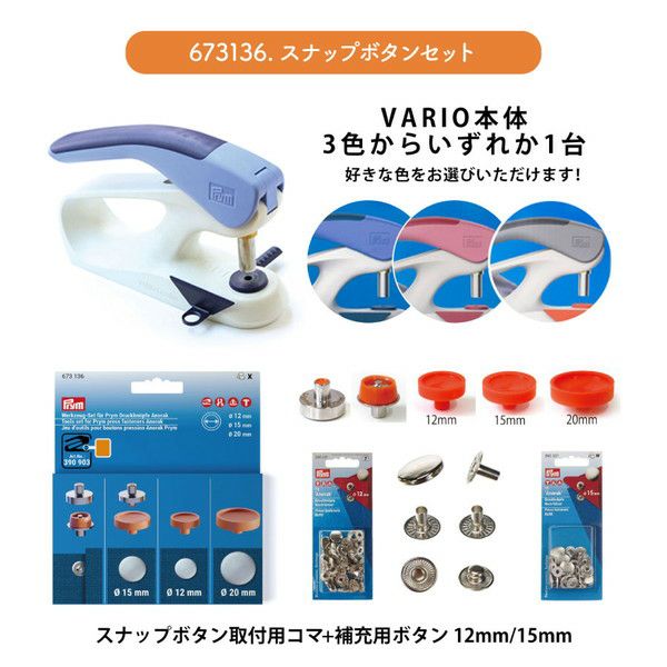 ・補充用 スナップボタン(φ12mm・15mm)…各1箱 10組入・ニッケル
