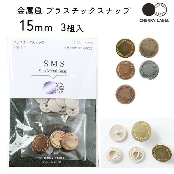メタル風スナップ ボタン 釦 ぼたんのみ 15mm 3組 CHERRY LABEL チェリーレーベル サンメタルスナップ type2 プラスチックスナップ