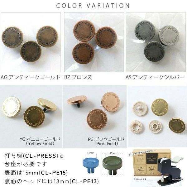 メタル風スナップ ボタン 釦 ぼたんのみ 15mm 3組 CHERRY LABEL チェリーレーベル サンメタルスナップ type2 プラスチックスナップ | 手芸材料のネットショップ つくる楽しみ.com