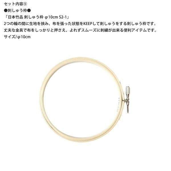 初心者の方が、刺しゅうを始めたいときに便利な道具をセットにしました! こちらは基本的なエントリーセットなります。各種サイズ・カラー・タイプ展開がございますので、このセットを起点にして、少しずつご自分のスタイルに合わせて道具を買い足していくことをお勧めいたします。 ■キット内容/刺しゅう針、刺しゅう糸通し、水性チャコペン、図案写しシート、刺しゅう枠(10cm)