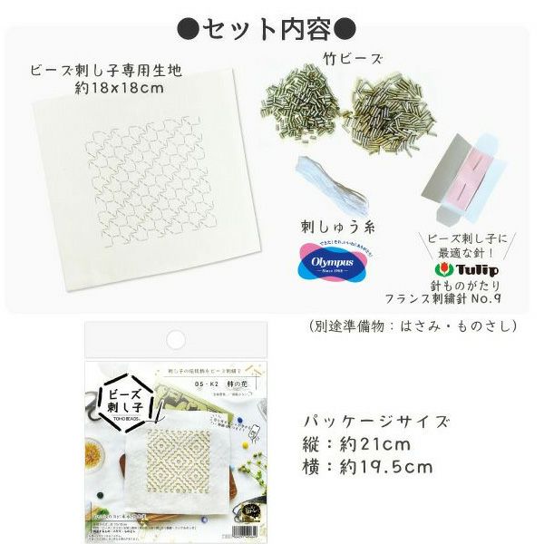 竹ビーズで表現される線が刺し子糸とは違う雰囲気で煌びやかに仕上がります。