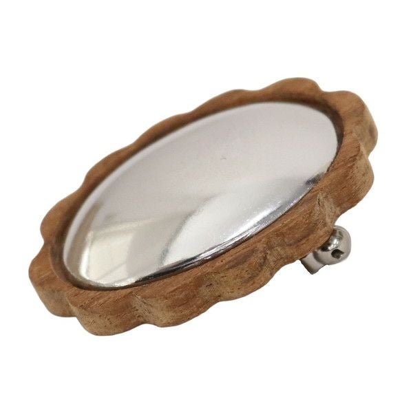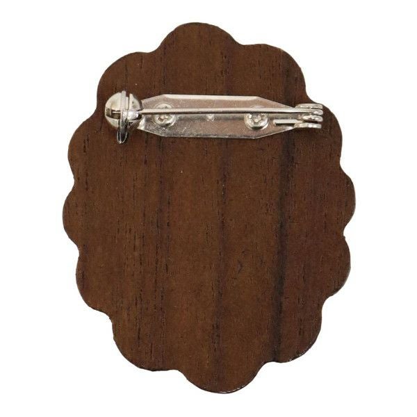 日本紐釦貿易 ウッドブローチ スカラップタイプ H47×W35mm 銅板・ピン付き 1個 ブラック A22-203