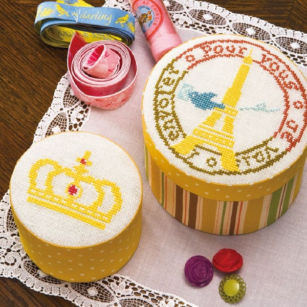 カルトナージュキット +レシピ付き セット 入れ子式 ラウンドボックス(2個セット) カット済厚紙セット | 手芸材料のネットショップ つくる楽しみ.com