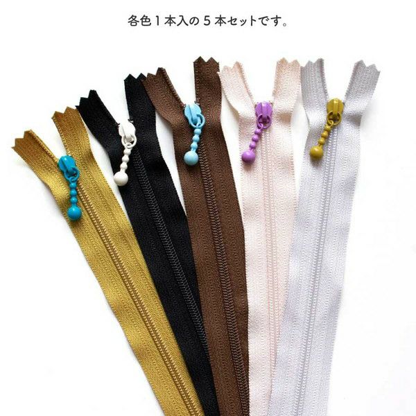 (お試し5本セット) 玉付きファスナー コイル 12cm カラフル 各色1本、計5本入 (セット) 玉付ファスナー 玉付 ファスナー YKK | 手芸材料のネットショップ つくる楽しみ.com