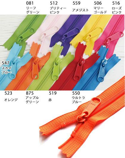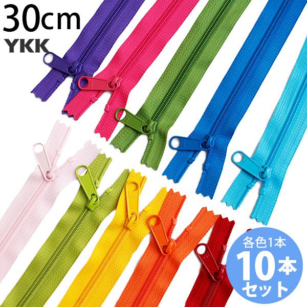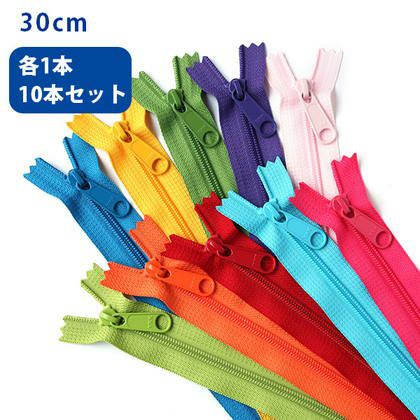 5. カラフル コイルファスナー 30cm 45コイル (各色1本計10本入) 玉付ファスナー 玉付 ファスナー YKK