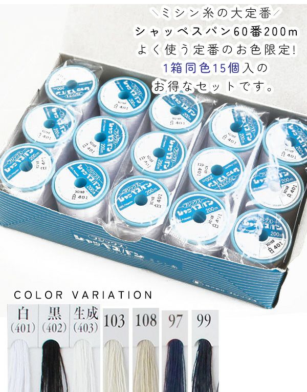ミシン糸 シャッペ 60番 200m 小巻 普通地用 1箱15個 卸売 まとめ買い 箱売り