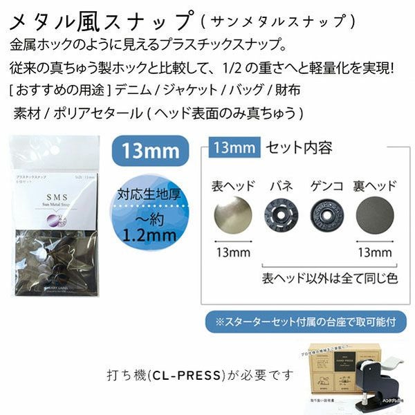 SUN METAL SNAP(SMS) 金属ホックに見えるプラスチックホック。