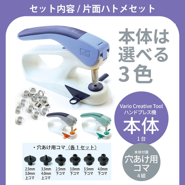 ハンドプレス機 家庭用+片面ハトメ コマ&補充用 3点セット プラスナップ ハンドプレス プリム(Prym) VARIO Creative Tool 選べるプレス機 | 手芸材料のネットショップ つくる楽しみ.com