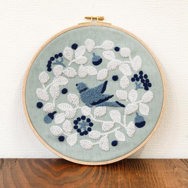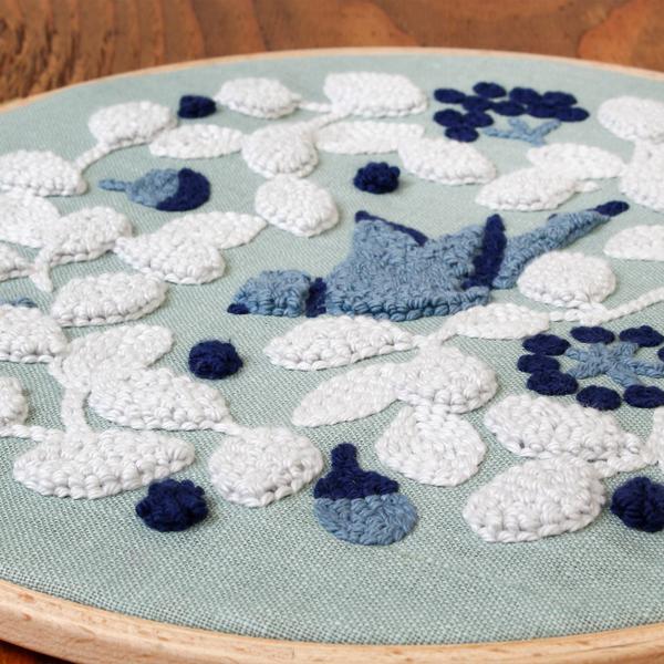 自然の風景からインスピレーションを得た草花や鳥のモチーフを、パンチニードルに適した構図でデザインしました。