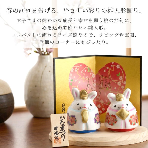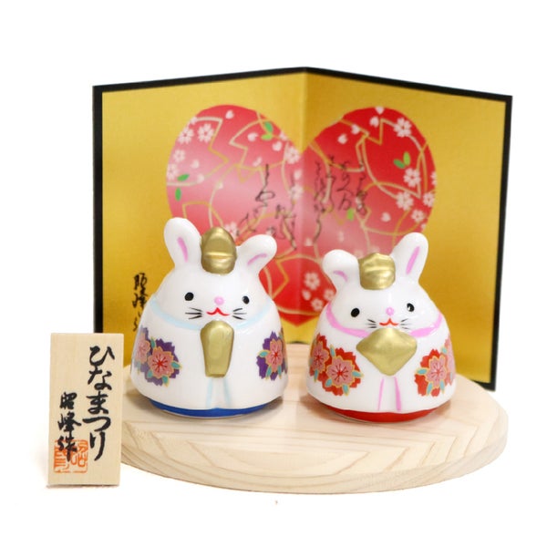 白磁の上品な質感が美しいうさぎこけし雛のお飾りセットです。