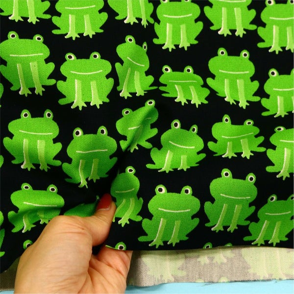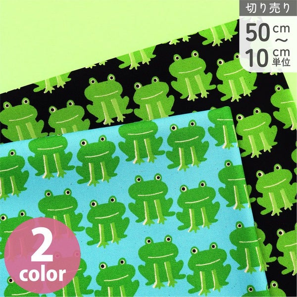 生地 オックス生地 オックスプリント生地 ぴょこっとカエル 巾約110cm (最低単位50cm~10cm単位の切り売り) | 手芸材料のネットショップ つくる楽しみ.com