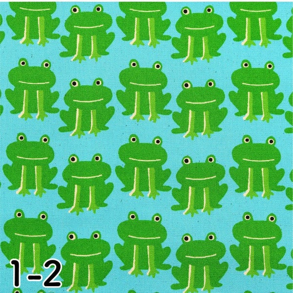 生地 オックス生地 オックスプリント生地 ぴょこっとカエル 巾約110cm (最低単位50cm~10cm単位の切り売り)