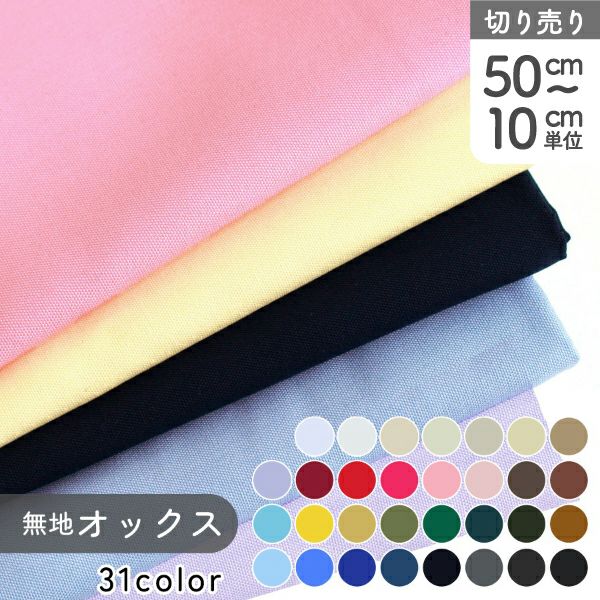 - 生地 無地 オックス 布 国産 コットン 全30色 日本製 全30色 最低単位50cm~10cm単位の切売 普通地 扱いやすい ハンドメイド 手芸 ソーイング 手作り 洋裁 衣装 コスプレ 小物 洋服│つくる楽しみ スプリングカラー