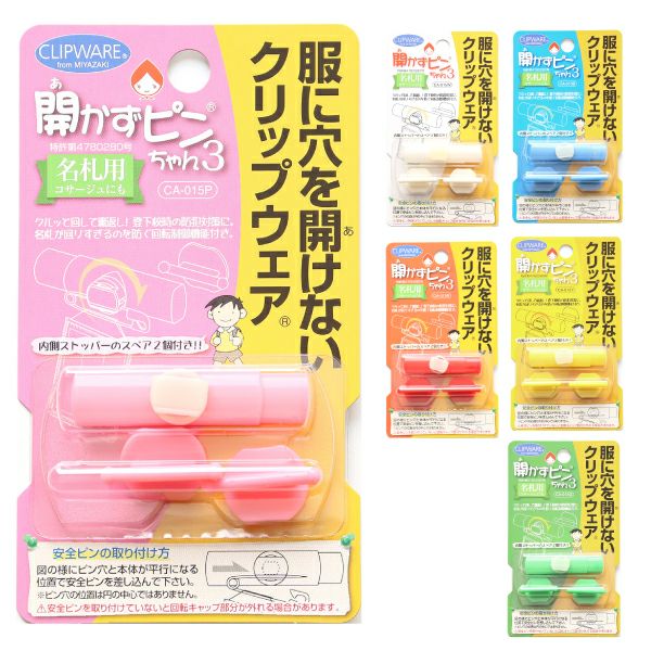 開かずピンちゃん 3 あかずぴん あかずピン クリップウエア 穴を空けずに名札をとめる 名札留め 新学期 入園入学 | 手芸材料のネットショップ つくる楽しみ.com