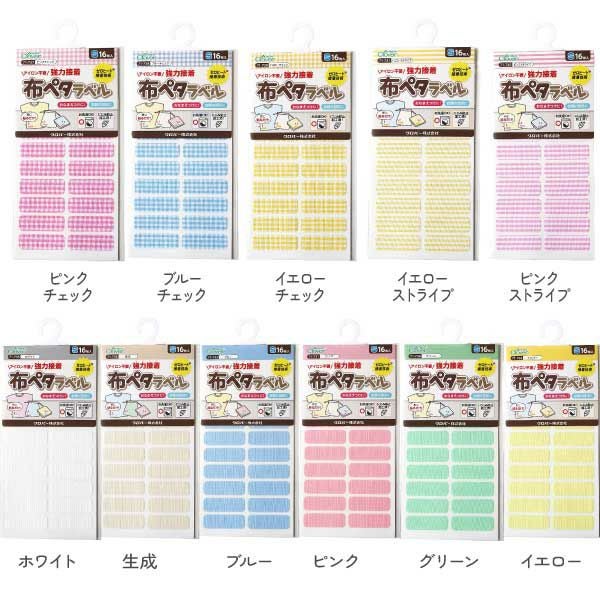 Clover アイロン不要・強力接着 布ペタラベル Sサイズ 30×10mm 小学生 目印 ラベル 12色 16枚入 71-731 | 手芸材料のネットショップ つくる楽しみ.com