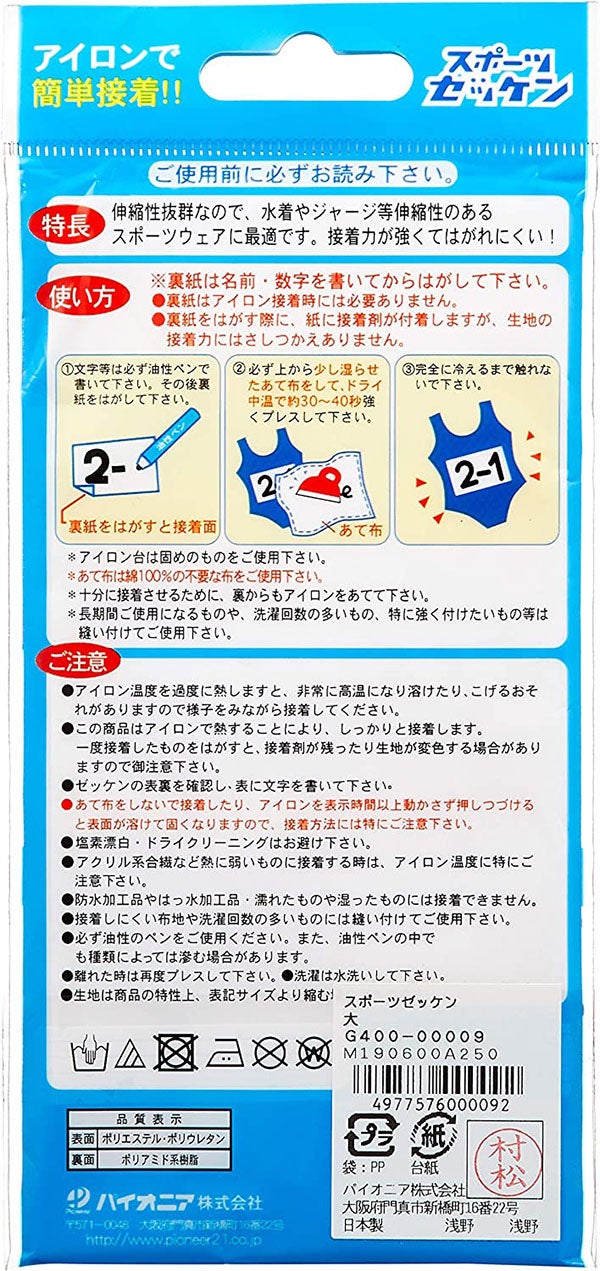 水着やジャージなどに最適 スポーツゼッケン アイロン接着 8cm×15cm 2枚入 のびのび スポーツゼッケン 水に強い のびのびタイプ ゆうパケットOK ¥ 221 税込 カートに入れる お気に入りに登録する