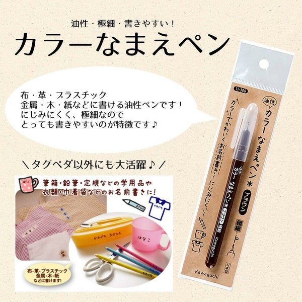 また、白い布から濃い布まで対応できるように、人気のネームペンのブラウン&ホワイトをセットにしました。