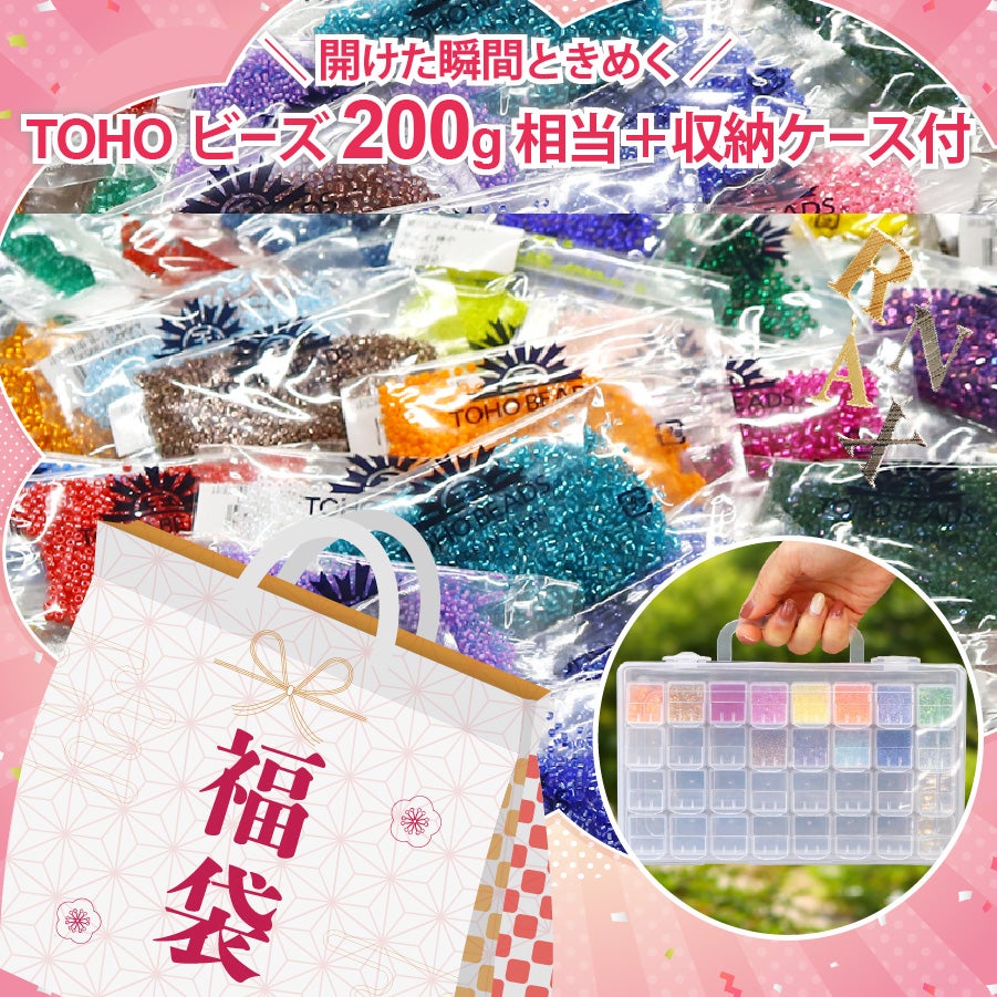 他の画像を見る FUK26T-101 福袋 2026 手芸 ハンドメイド TOHO蔵出しビーズ20g×10袋ランダム 透明ビーズケース付き ビーズアソート 収納ケース付 スターターセット 初心者 推し活アクセサリー ハンドメイドパーツ 数量限定 ¥ 3,982 税込 販売期間 2026/03/04 17:00 〜 2026/03/31 0:00 お気に入りに登録する