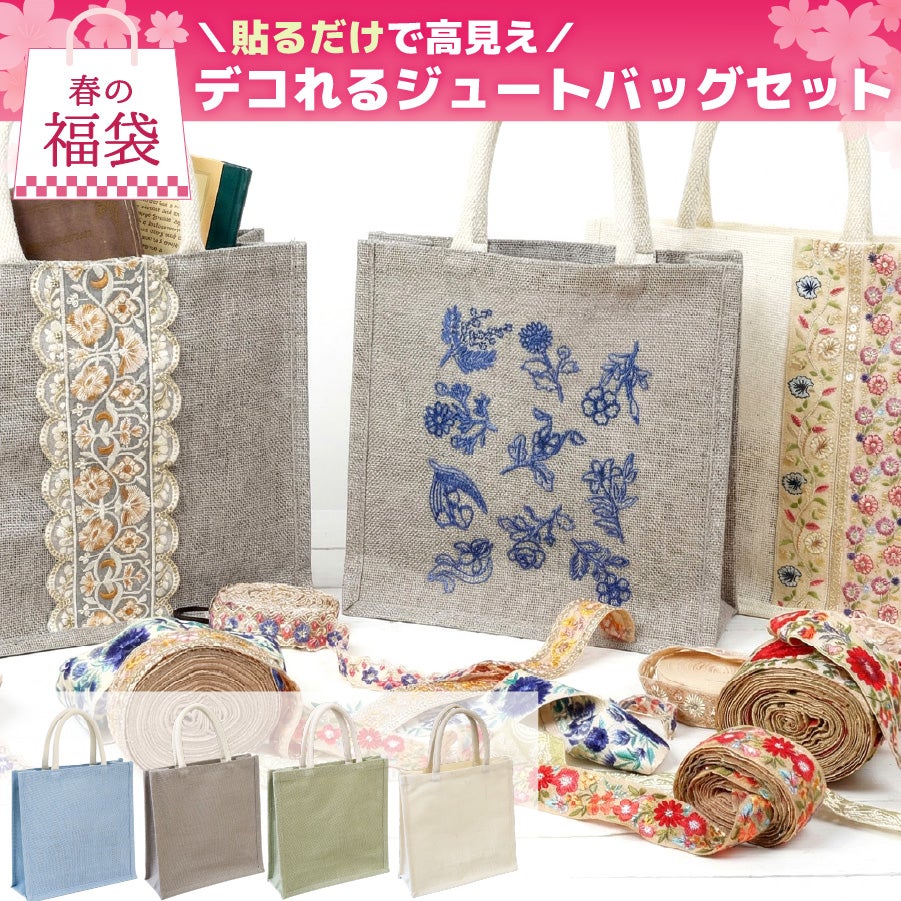 他の画像を見る FUK26T-102 福袋 2026 手芸 ハンドメイド デコれるカラージュートバッグセット ジュートバッグ デコ素材 刺繍 ワッペン 推し活 カスタム トートバッグ ナチュラル素材 春DIY 数量限定 ¥ 3,982 税込 販売期間 2026/03/04 17:00 〜 2026/03/31 0:00 お気に入りに登録する