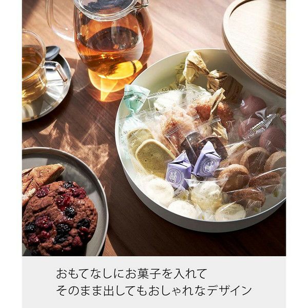 山崎実業 蓋付き収納ケース ラウンド ホワイト ブラック 1個入