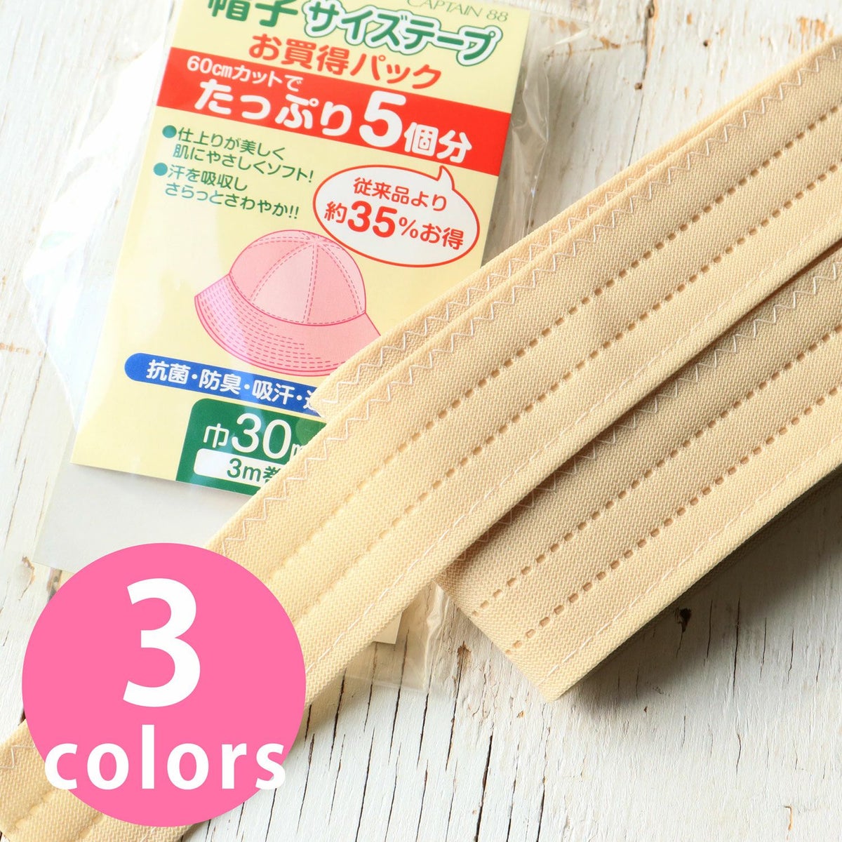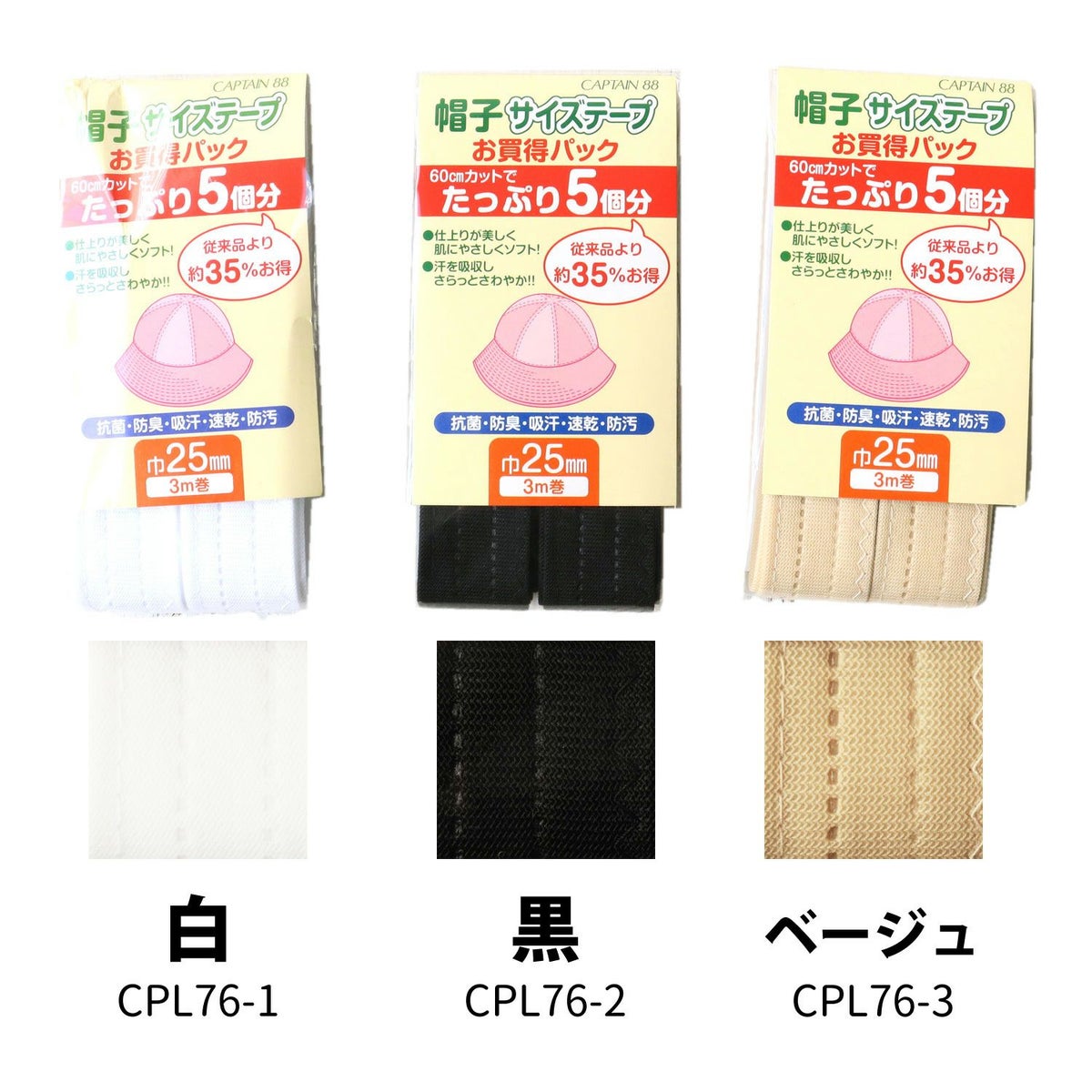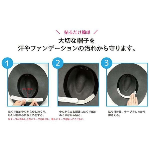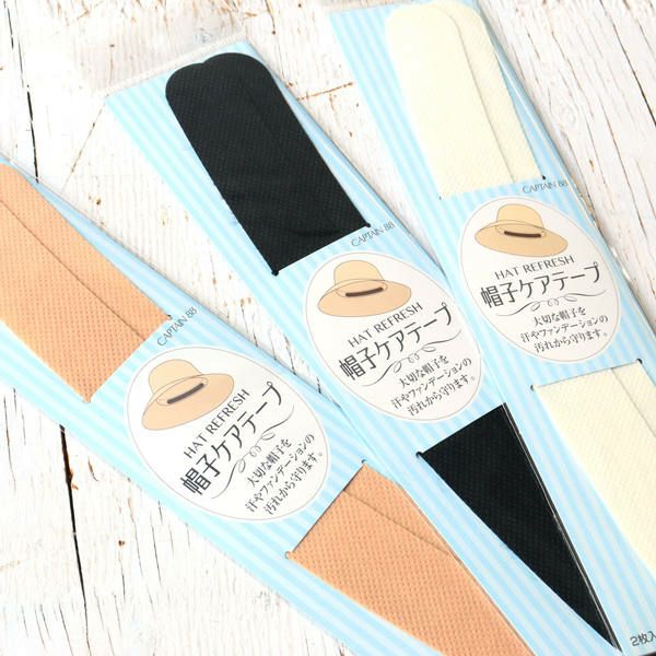 他の画像を見る 肌に優しい不織布素材 帽子を汗やファンデーションなどの汚れから守ります 帽子 汚れ防止 テープ キャプテン 帽子ケアテープ 2、5cm×23cm 抗菌・防臭加工 1白 2黒 3ベージュ 2枚入全3色 ¥ 275 税込 お気に入りに登録する