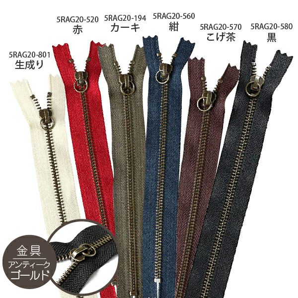 金属 ファスナー 20cm 4番 ゴールド シルバー アンティークゴールド YKK (1本) 秋カラーファスナー オータム