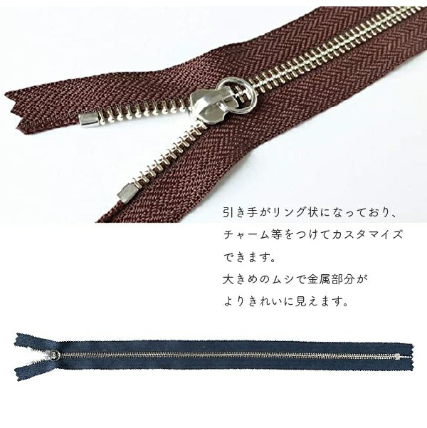 リングにお好みのパーツを付けてお楽しみいただけるファスナーです。
