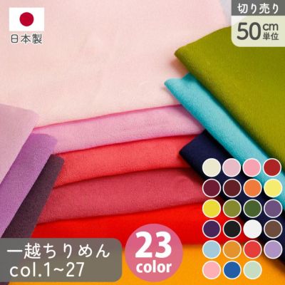 一越ちりめん 無地 ちりめん 生地 布 47色 co.1~27 巾約70cmx50cm単位の切売 ちりめん ひとこし つまみ細工 和手芸 日本製│つくる楽しみ PIC