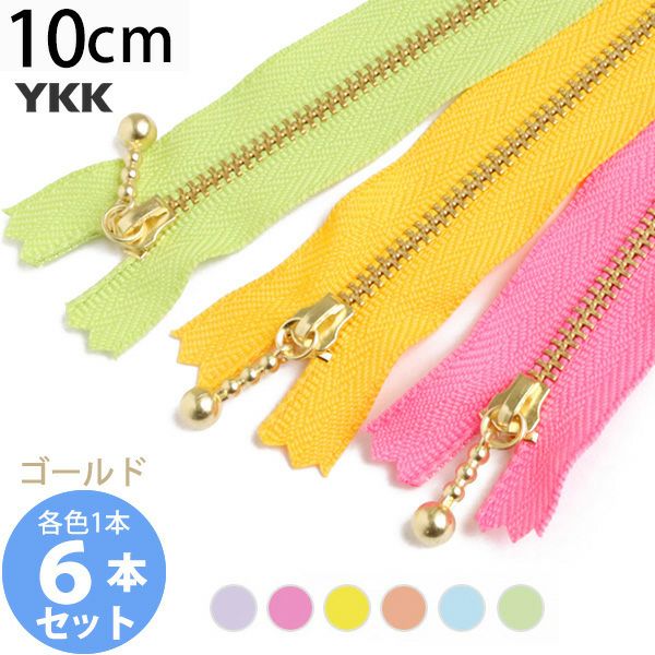 (お試し6本セット) 玉付きファスナー ゴールド 金属 マカロン (各色1本) 玉付ファスナー 玉付 ファスナー YKK ファスナーお試し