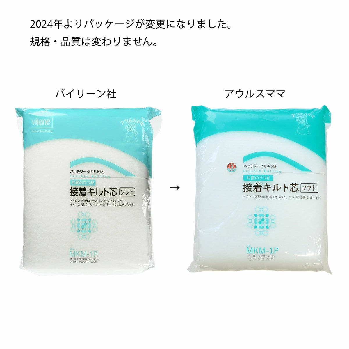 キルト芯 アウルスママ 接着キルト芯 極薄 片面のりつき 100×100cm 白 「MK-1P」の後継品 片面接着 オルヌマン