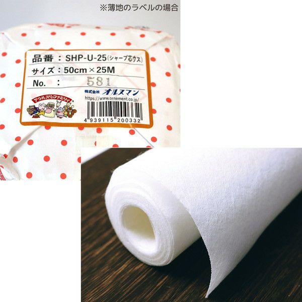 オルヌマン アウルスママ シャープ芯 薄手 アイロン接着芯 50cm×25m巻 白 SHP-U-25