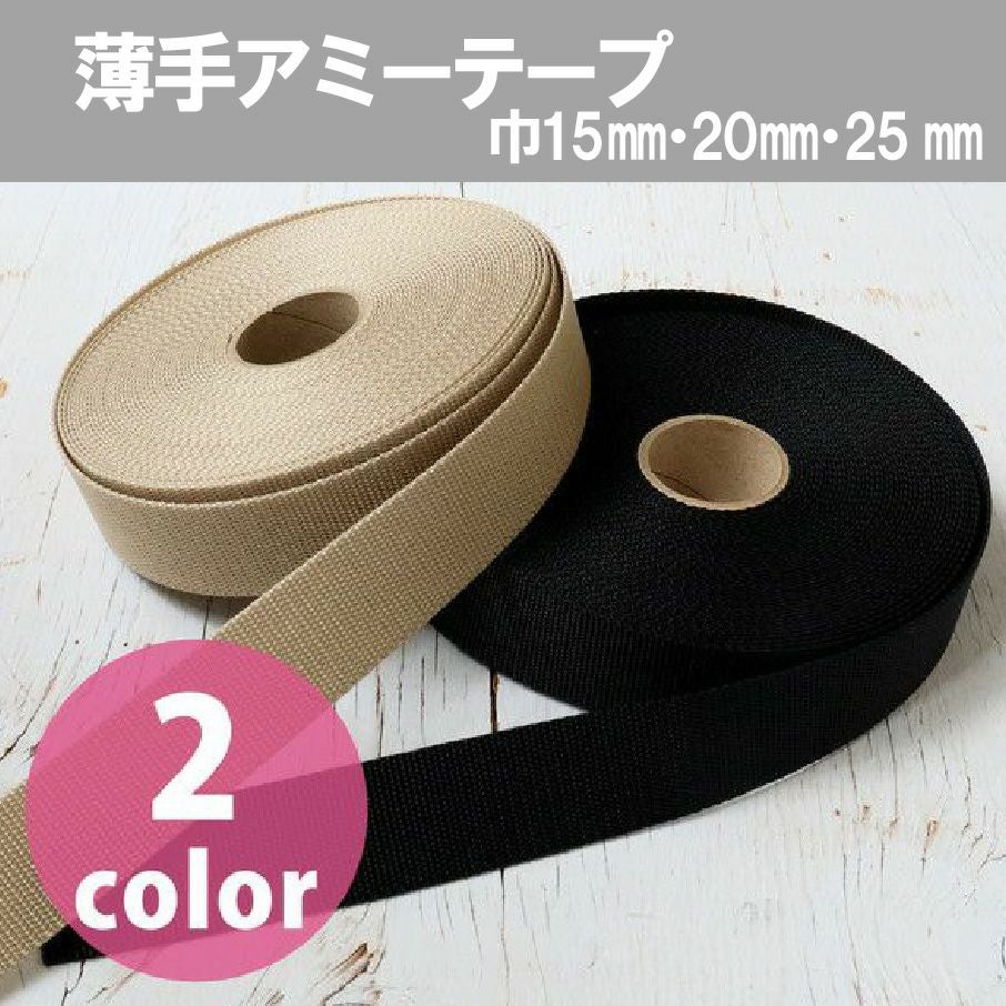 しなやかで軽い 薄手アミーテープ 巾約15・20・25mm×10m 1mm厚