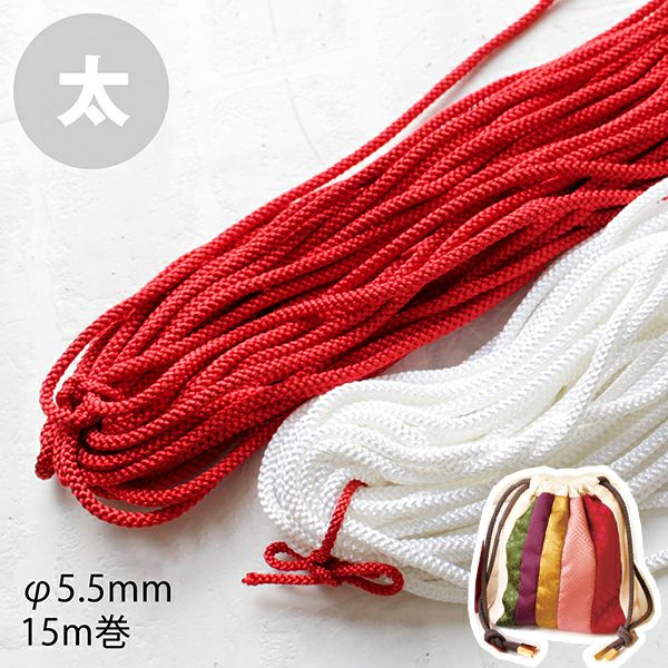 江戸打ひも 太 太さ約 5mm x 15m 赤 白 2色 江戸打ち紐 和 和風 紐 ひも 和手芸