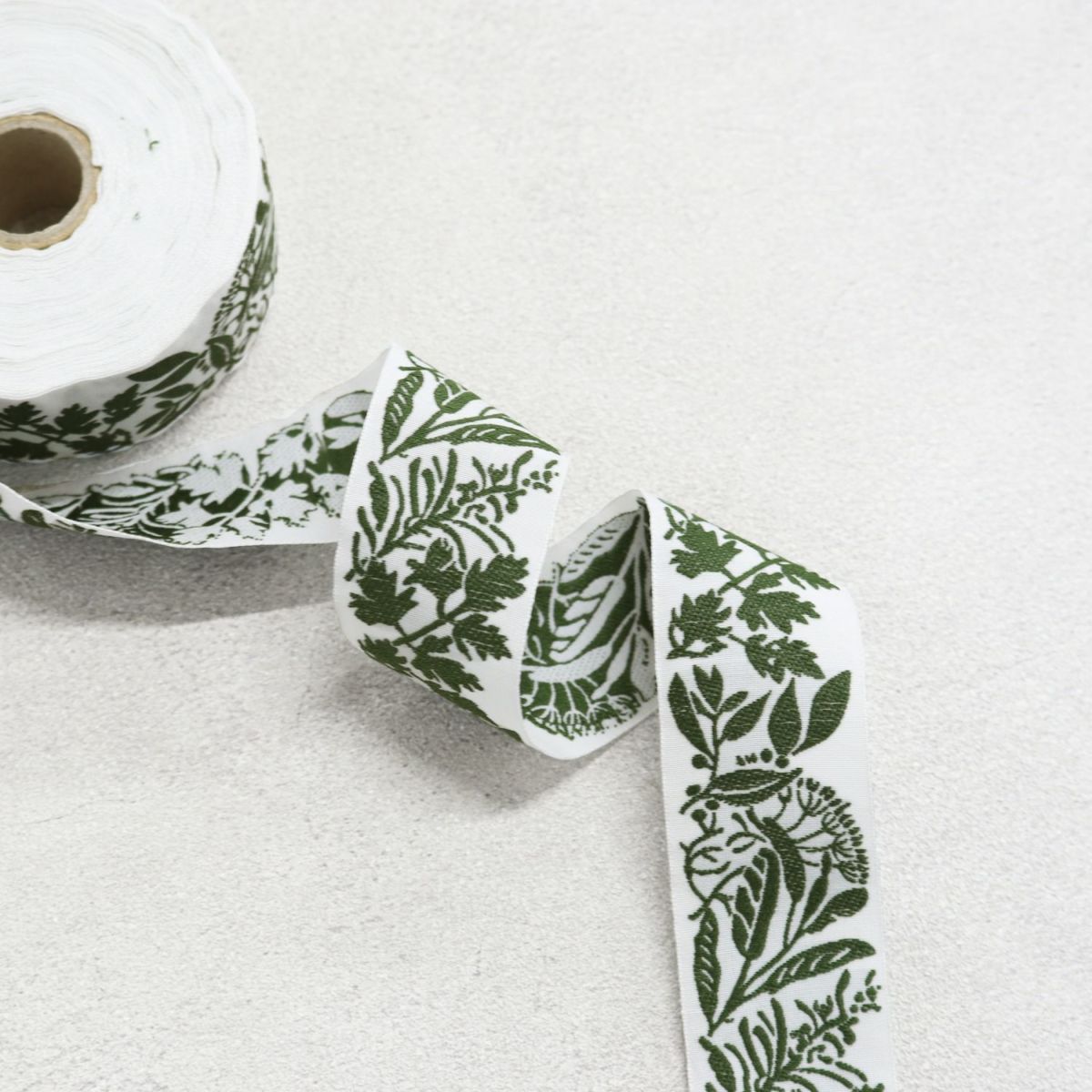 他の画像を見る PAU100587-2 リボン 高級ジャガード織 ジャガードリボン 織リボン カフカリボン ドイツリボン インポート 巾約3.2cm (50cm単位の切り売り) ¥ 1,001 税込 お気に入りに登録する