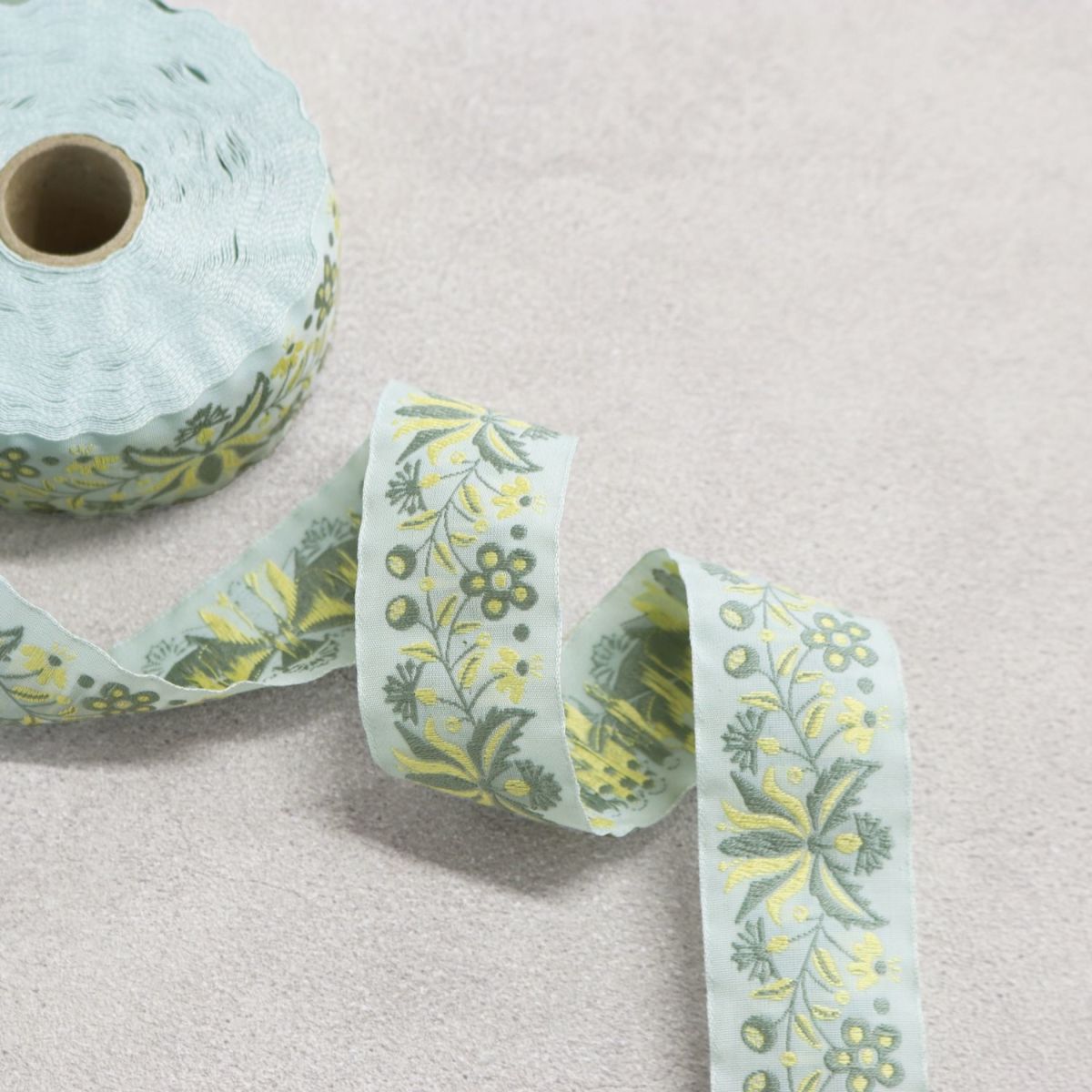 他の画像を見る PAU100604-9-50 リボン 高級ジャガード織 ジャガードリボン 織リボン カフカリボン ドイツリボン インポート 巾約2.5cm (50cm単位の切り売り) ¥ 1,100 税込 お気に入りに登録する